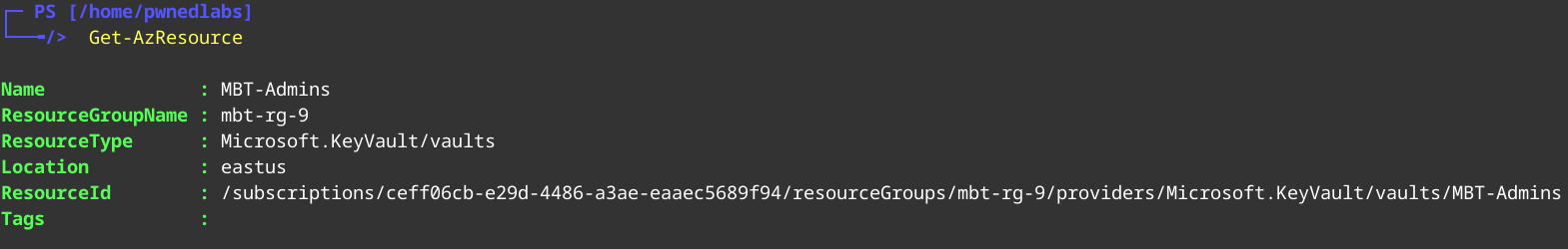 We don’t see any interesting Groups either. Let’s see which Azure resources Sam has access to.