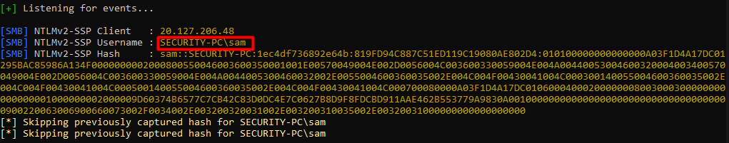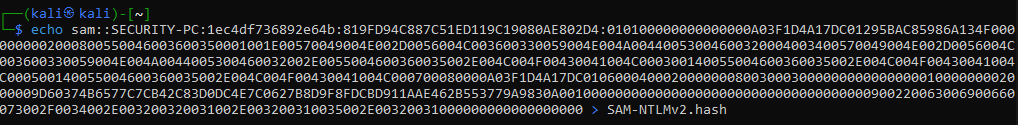 And we have captured the NTLMv2 hash for SAM. Now let’s copy the hash to a text file in order to crack the hash and get a password to use.
