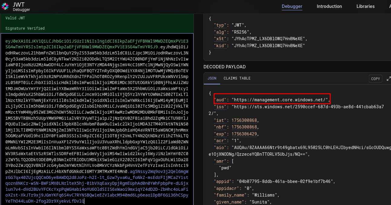 Now we confirm the token is for the correct audience using jwt again.