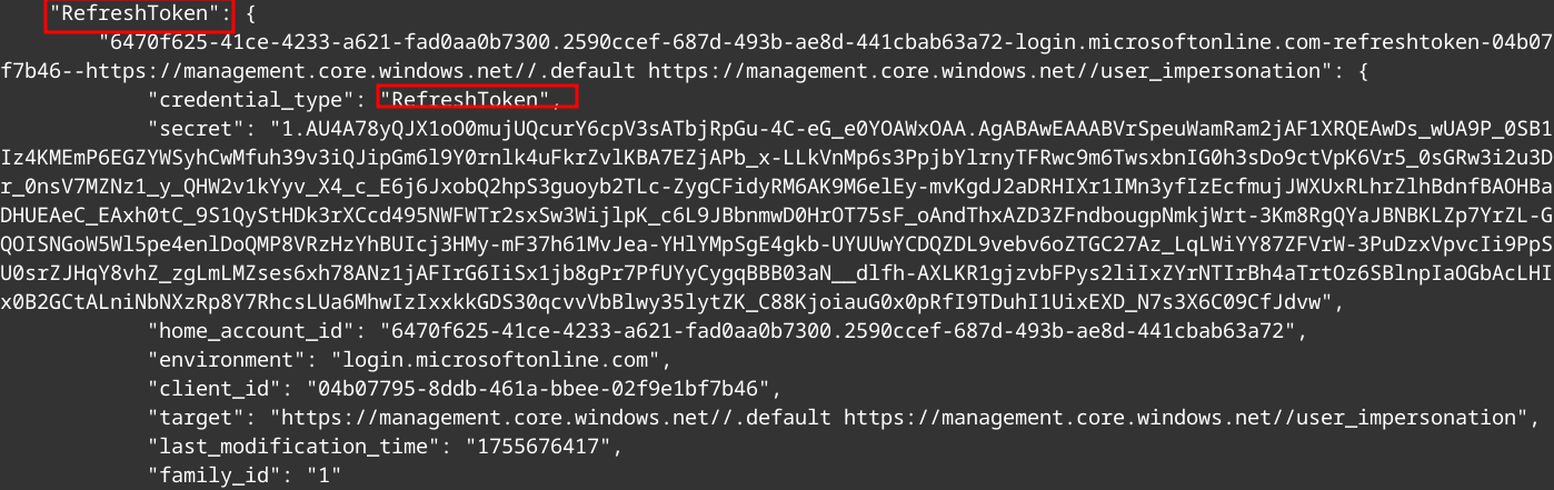Inside the file we can look for the Refresh token.