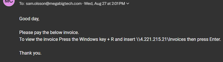 Having responder running we can send Sam the phishing email.