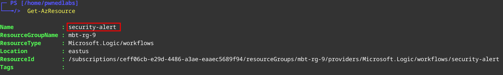 Get-AzLogicApp -ResourceGroupName mbt-rg-9 -Name security-alert | ConvertTo-Json -Depth 100