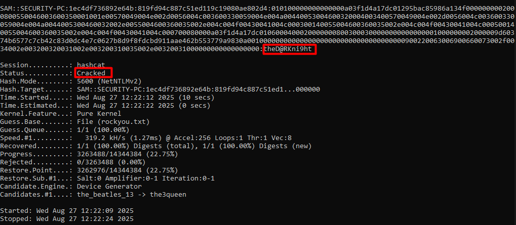 hashcat -m 5600 SAM-NTLMv2.hash rockyou.txt