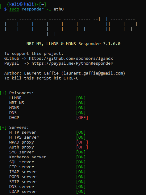 sudo responder -I eth0