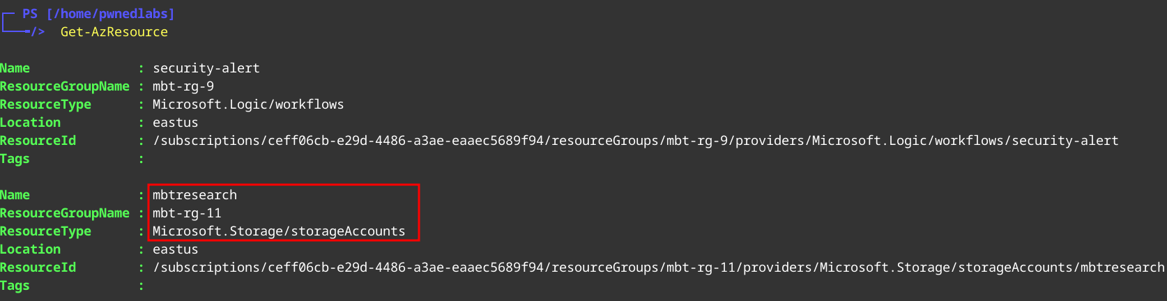 Now we list the resources we have access to.
