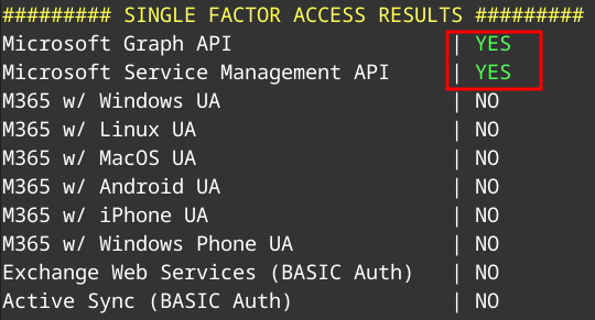 The credentials seem to be valid. Now as usual we can look for MFA gaps as well.
