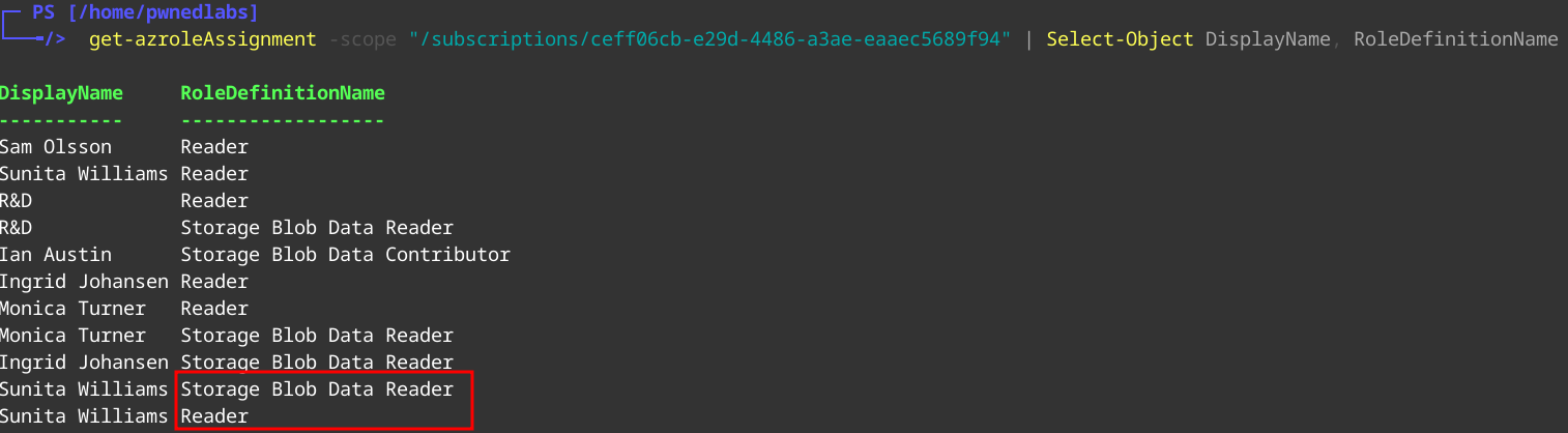 Now we enumerate as Sunita. We look at which roles are assigned first.